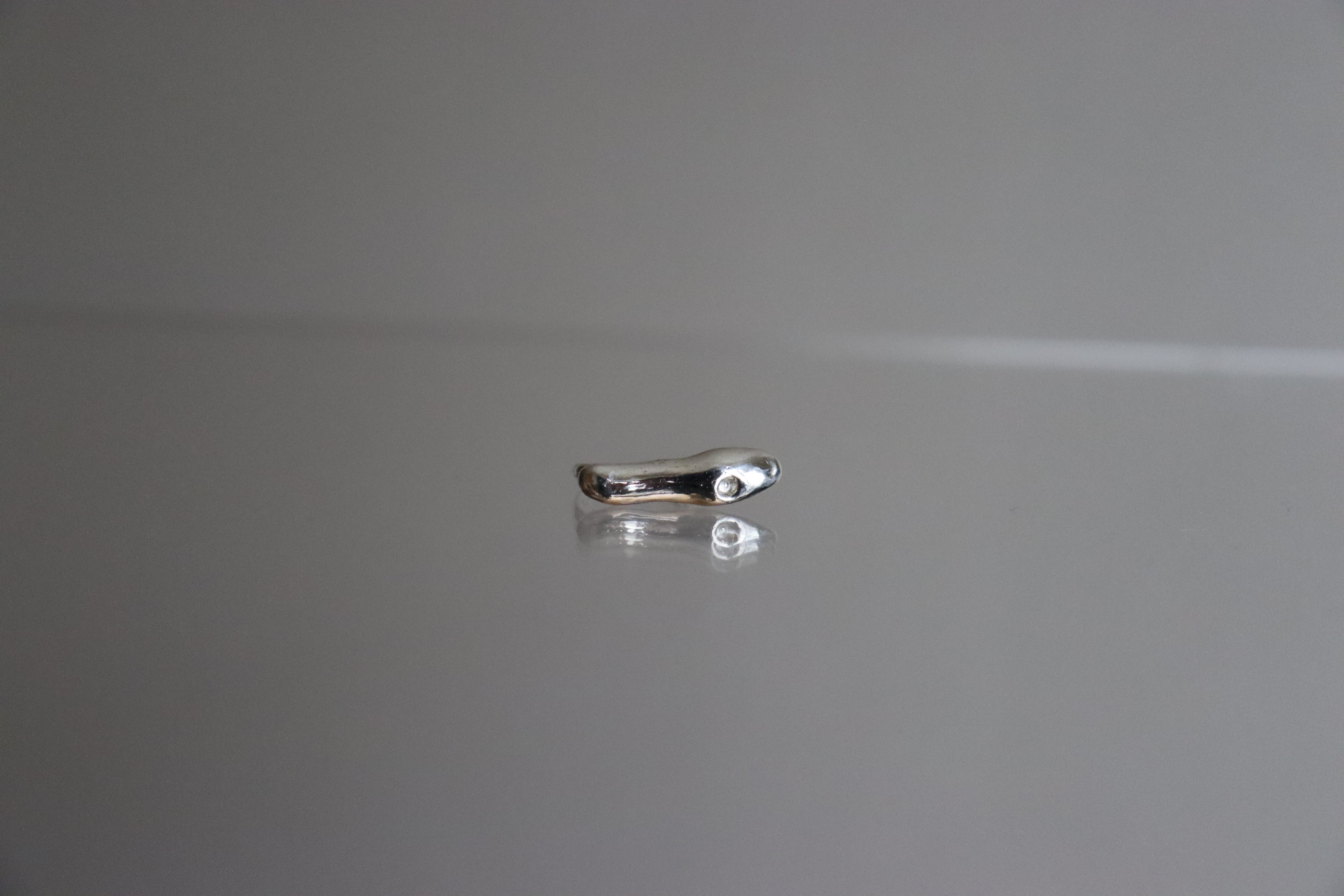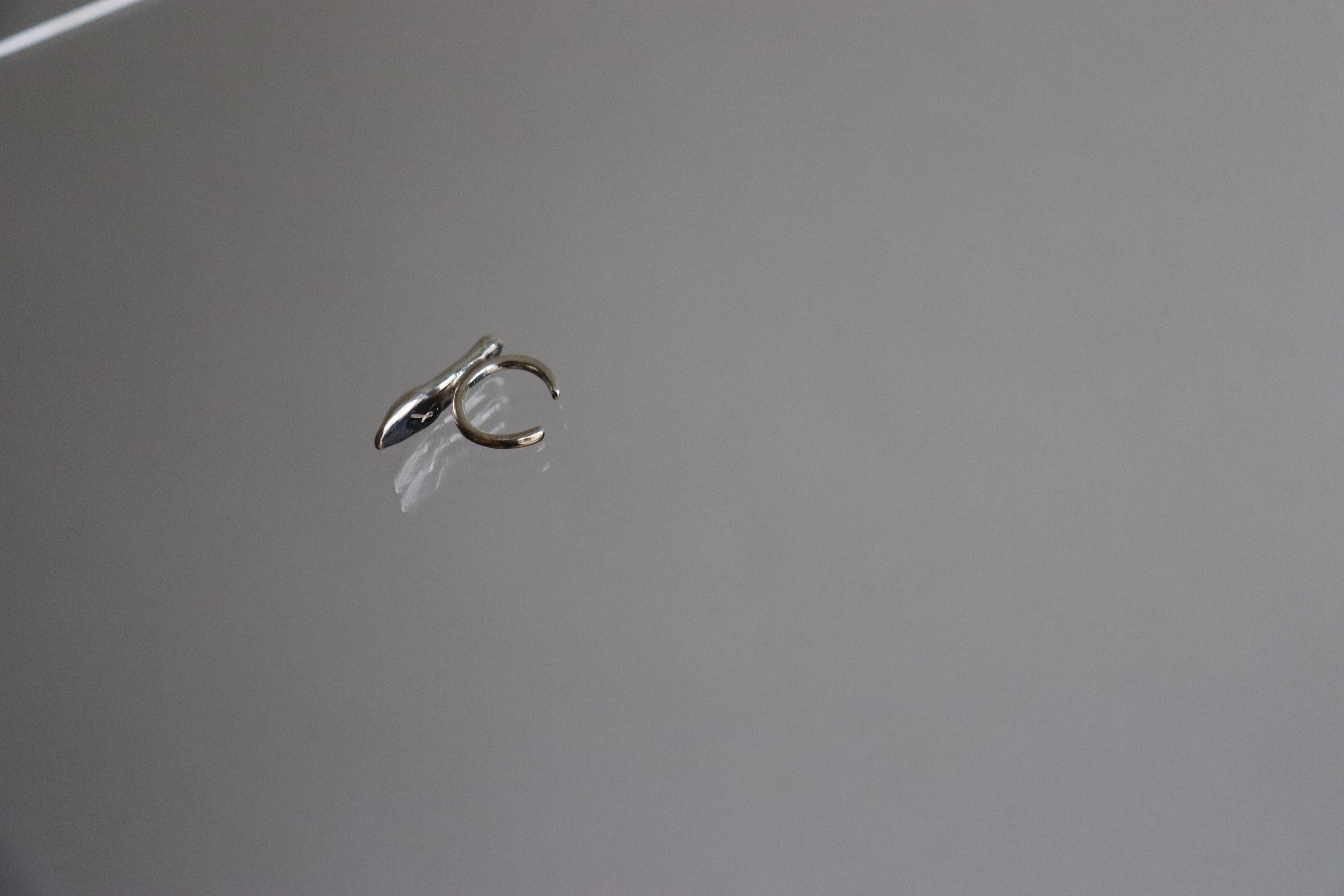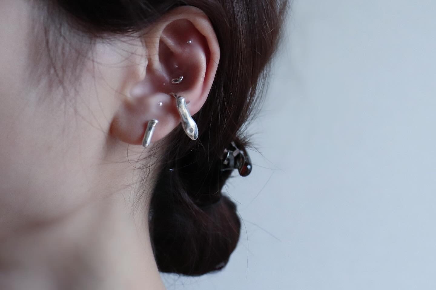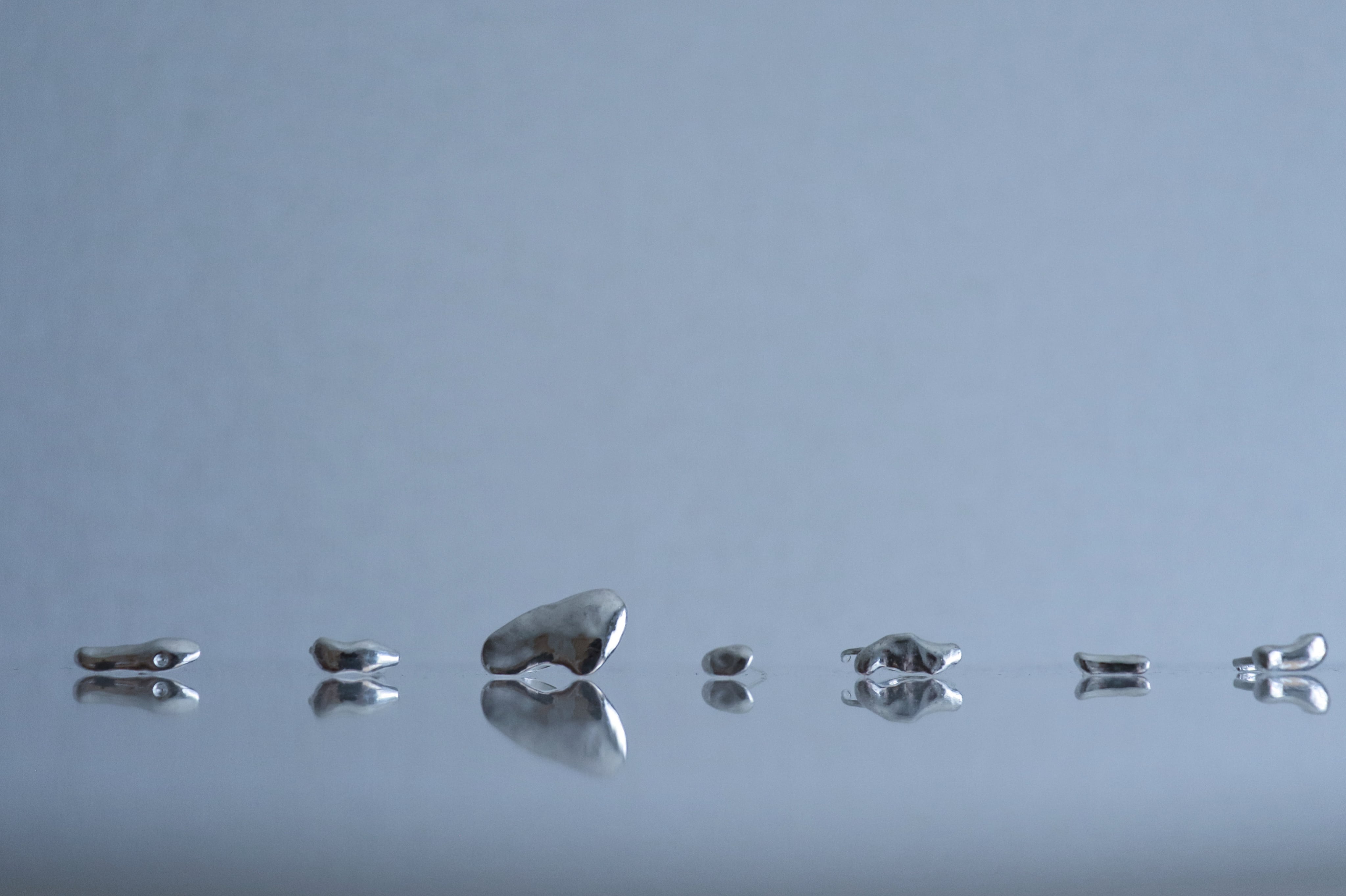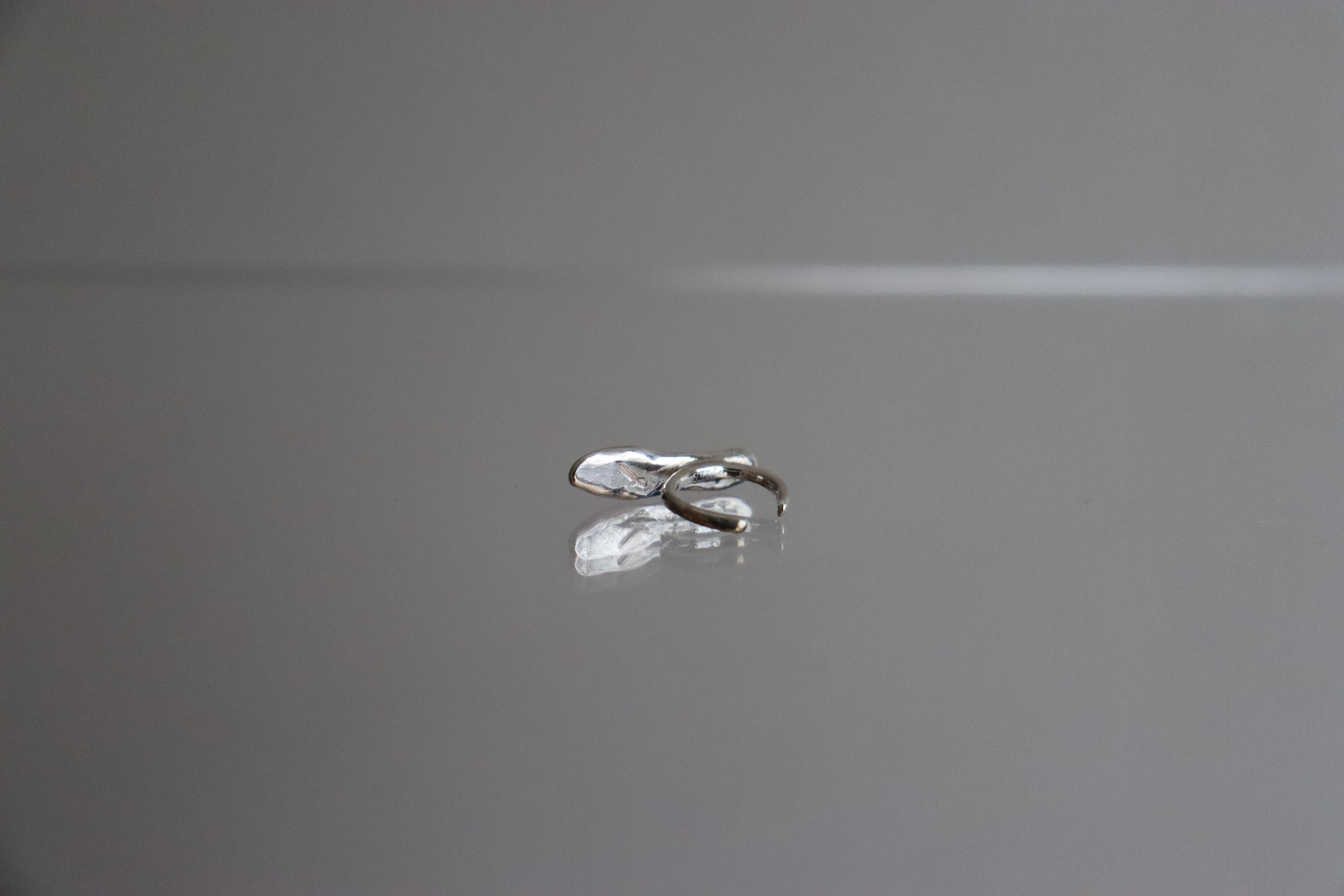 制作過程で出来る気泡やいびつさの美しさをのこし、そのまま耳飾りとして仕立てました。